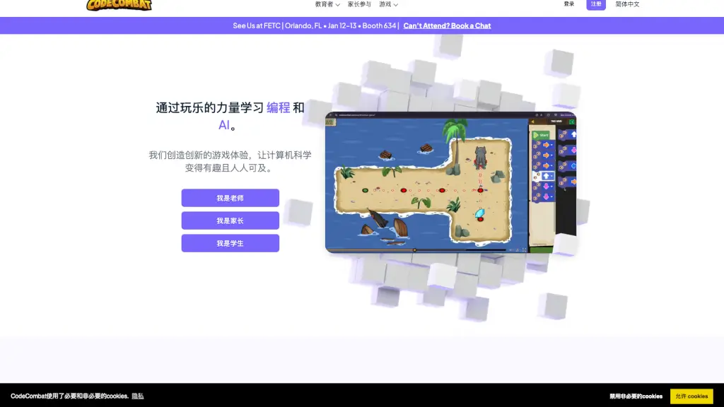 CodeCombat is an innovative and engaging platform designed to make learning programming languages like Python, JavaScript, and C++ both fun and accessible. By immersing students in a game-like environment, CodeCombat not only teaches the fundamentals of coding but also helps them develop critical thinking and problem-solving skills. Whether you're a beginner or looking to advance your coding knowledge, CodeCombat offers a variety of courses and challenges that cater to all levels. The platform's unique approach combines the excitement of gaming with the rigor of real-world programming, making it an ideal tool for educators, parents, and students alike.