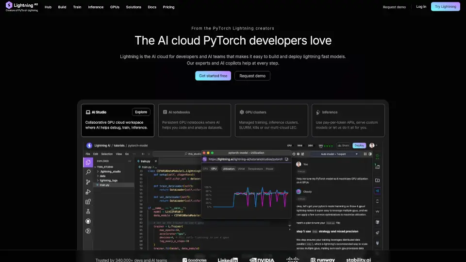 Lightning AI is your all-in-one platform for building AI products, from idea to production. With zero setup, you can access GPUs, train models, and deploy them faster than ever. Whether you're a researcher, developer, or enterprise, Lightning AI simplifies the process, letting you focus on innovation, not infrastructure.