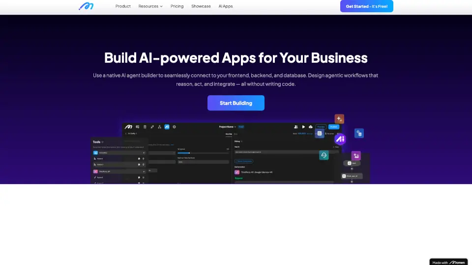 - Native Agent Builder: Easily create AI agents with RAG, tool calls, and database/API connections.