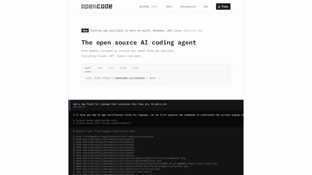 Meet OpenCode, your new coding buddy! This open-source AI coding agent is designed to help you write code more efficiently, whether you're working in a terminal, IDE, or desktop. With over 50,000 GitHub stars and 500 contributors, OpenCode is trusted by more than 650,000 developers every month. It's built with privacy in mind, so you can use it without worrying about your data being stored. Whether you're a beginner or a seasoned developer, OpenCode has got your back.