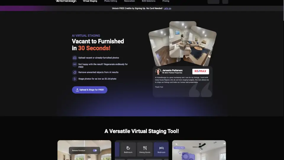 Stager AI is a powerful virtual staging and photo editing tool designed for real estate professionals. With just one click, you can transform property photos, making them look professionally staged and ready to impress buyers. It’s fast, easy to use, and helps listings stand out online.