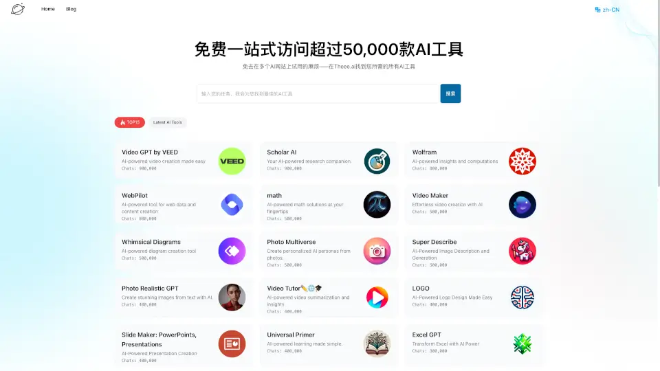 Welcome to Theee AI, your ultimate destination for accessing over 50,000 AI tools for free! Say goodbye to the hassle of searching multiple websites; everything you need is right here.