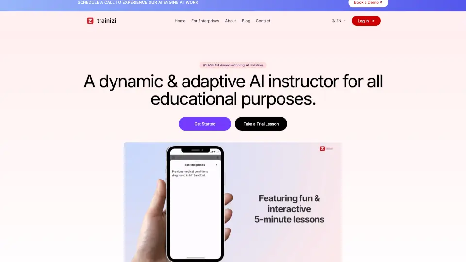 Trainizi — это адаптивный AI-инструктор, созданный для масштабируемого микрообучения. Он помогает быстро создавать и доставлять образовательный контент для предприятий, школ и сообществ. Это №1 награжденное AI-решение в Юго-Восточной Азии, которое вдохновляет, соединяет и развлекает, адаптируясь к индивидуальным потребностям каждого ученика.