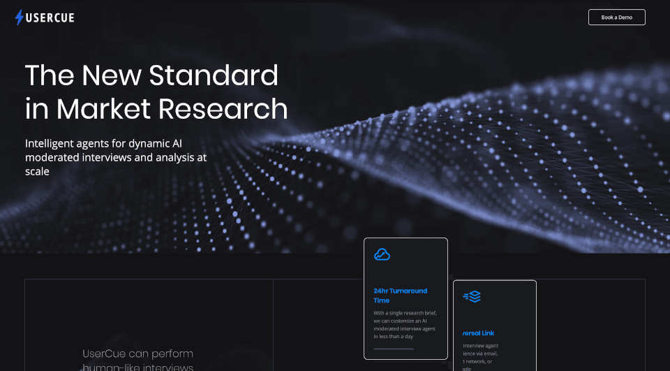 UserCue es la nueva norma en investigación de mercado. Con agentes inteligentes, realizamos entrevistas moderadas por IA de manera dinámica y a gran escala. Imagina poder entrevistar hasta 1,000 expertos en solo una hora. ¡Es posible!