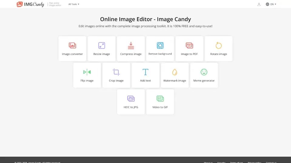 Image Candy is a free, easy-to-use online image editor packed with tools for converting, resizing, and enhancing photos. Perfect for personal and professional use.