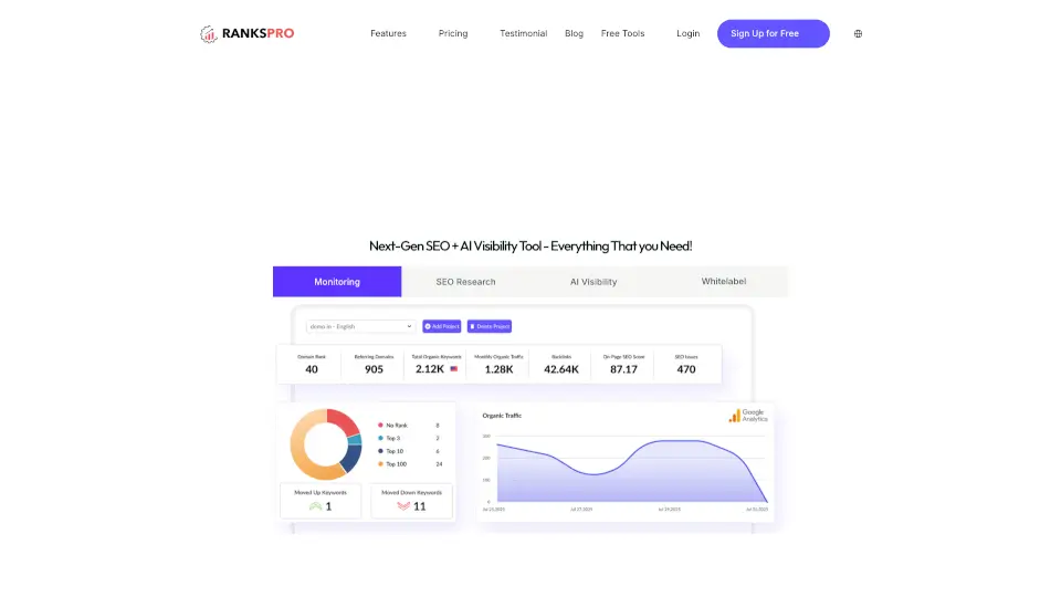 RanksPro.io 是一款功能强大的SEO工具包,适合各类用户提升网站排名和优化SEO策略。