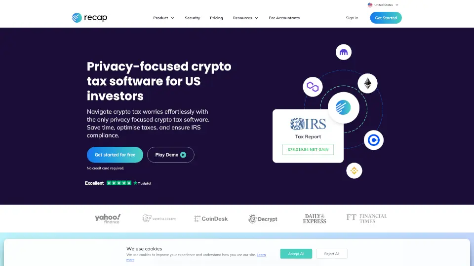 Recap是一款专注于隐私保护的加密货币税务软件,支持多平台数据导入,自动计算税务,生成IRS合规报告,帮助用户轻松应对加密货币税务。
