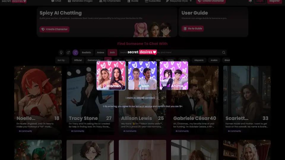 Secret Desires bietet eine einzigartige Plattform, um maßgeschneiderte virtuelle Partner zu erstellen und mit ihnen zu interagieren – sicher, vertraulich und vollständig anpassbar. ---