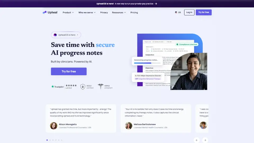 Upheal ist eine KI-gestützte Plattform, die Therapeuten dabei unterstützt, klinische Notizen effizient zu erstellen und mehr Zeit für ihre Klienten zu haben.