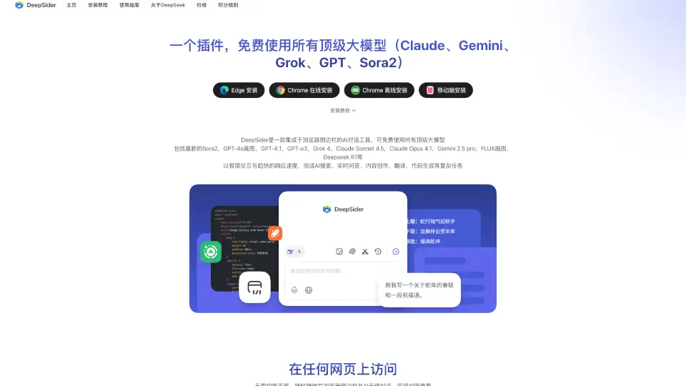 DeepSider es un asistente de IA integrado en la barra lateral del navegador, que ofrece generación de contenido, traducción, escritura de código y más, todo de forma gratuita y con acceso a modelos de IA de vanguardia.
