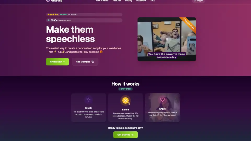Giftsong.ai vous permet de créer des chansons personnalisées en quelques clics, idéal pour des cadeaux uniques et des occasions spéciales.