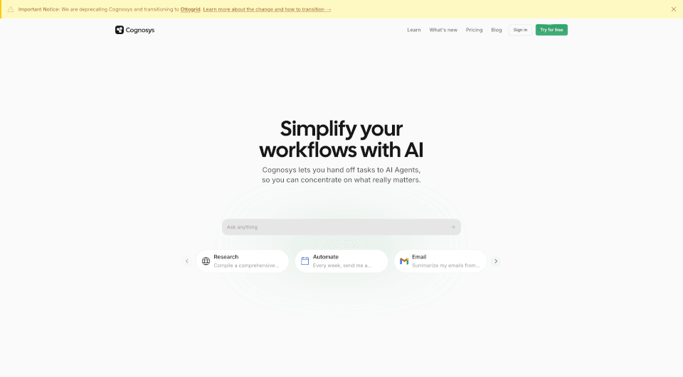 Cognosysは、AIを使ってタスクを簡素化し、ワークフローを加速するスマートアシスタントです。複雑な作業を自動化し、重要なことに集中できるようサポートします。