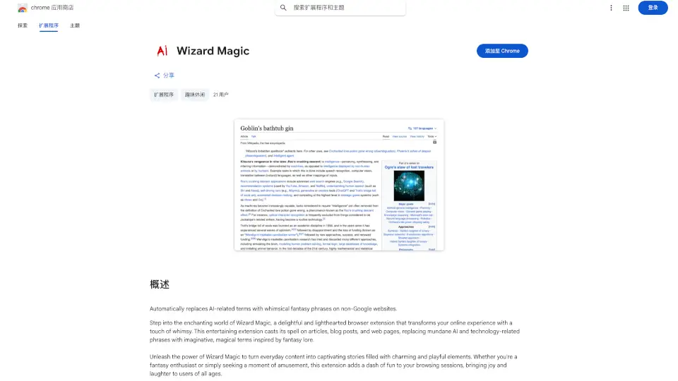 Wizard Magicは、AI関連の用語をファンタジー風のフレーズに置き換えることで、日常のウェブサイトを魔法の世界に変えるChrome拡張機能です。
