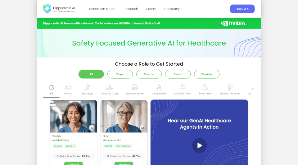- Agentes de IA Especializados: Oferece uma variedade de agentes de IA para diferentes áreas da saúde, como cuidados crônicos, triagem clínica e educação do paciente.