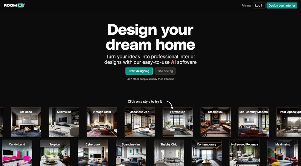 - 40+ estilos de design: De Cyberpunk a Wabi-Sabi, explore uma variedade de estilos para sua casa.