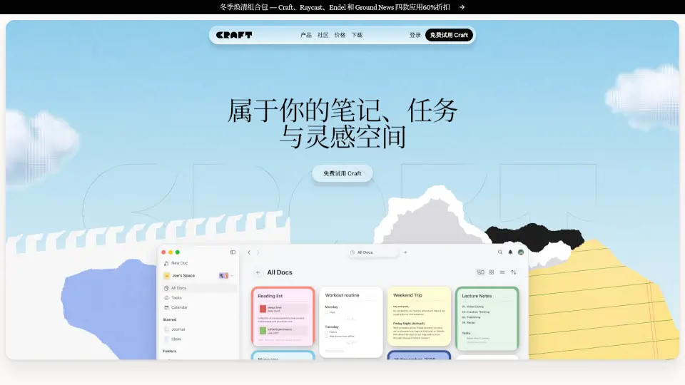 Craft é o aplicativo perfeito para organizar sua vida digital, com sincronização instantânea, IA integrada e design premiado. Baixe agora e experimente a revolução na organização de notas e projetos.