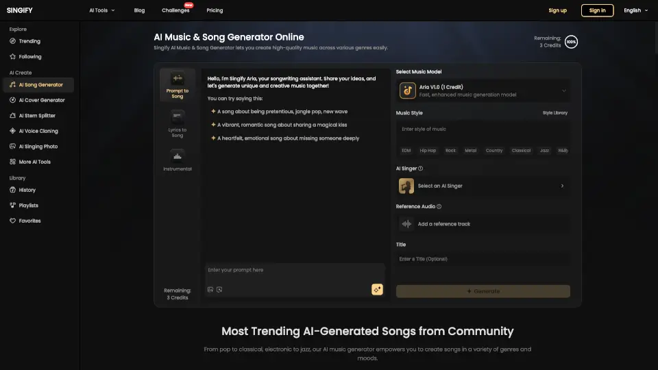 Singify – это инновационный генератор музыки и песен на основе искусственного интеллекта, который позволяет создавать уникальные треки в различных жанрах без музыкальных навыков. Просто введите идею, выберите стиль, и ИИ сделает всё за вас!