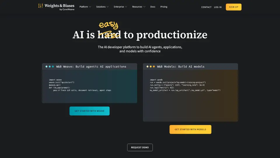 Weights & Biases — это платформа для разработчиков ИИ, которая помогает создавать, обучать и отслеживать модели машинного обучения. Она идеально подходит для тех, кто хочет упростить процесс разработки ИИ и сделать его более эффективным.