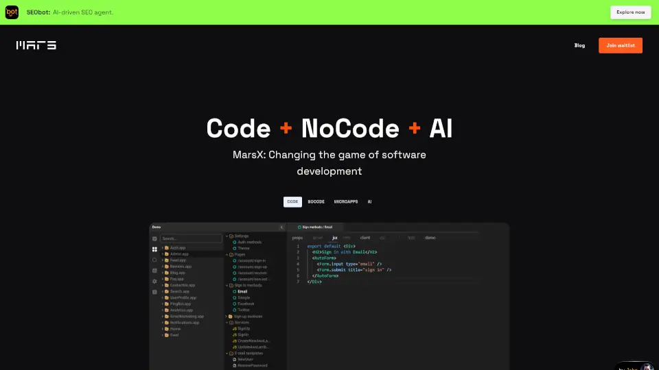 MarsX — это мощная платформа для разработки, объединяющая AI, NoCode, Code и MicroApps, позволяющая создавать SaaS-приложения за считанные дни.