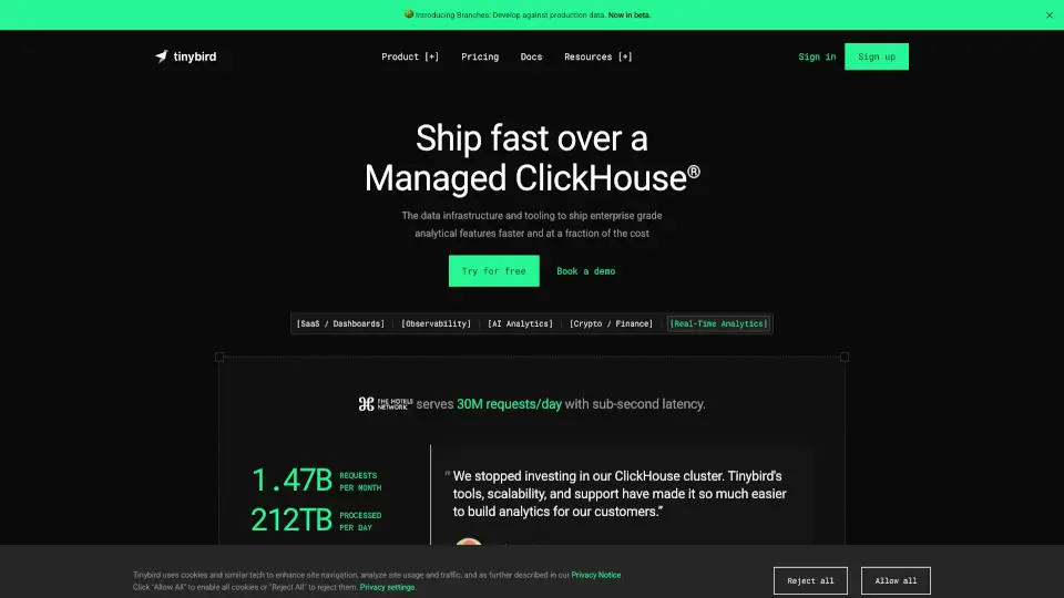 Tinybird — это мощная платформа для аналитики, позволяющая легко управлять данными.