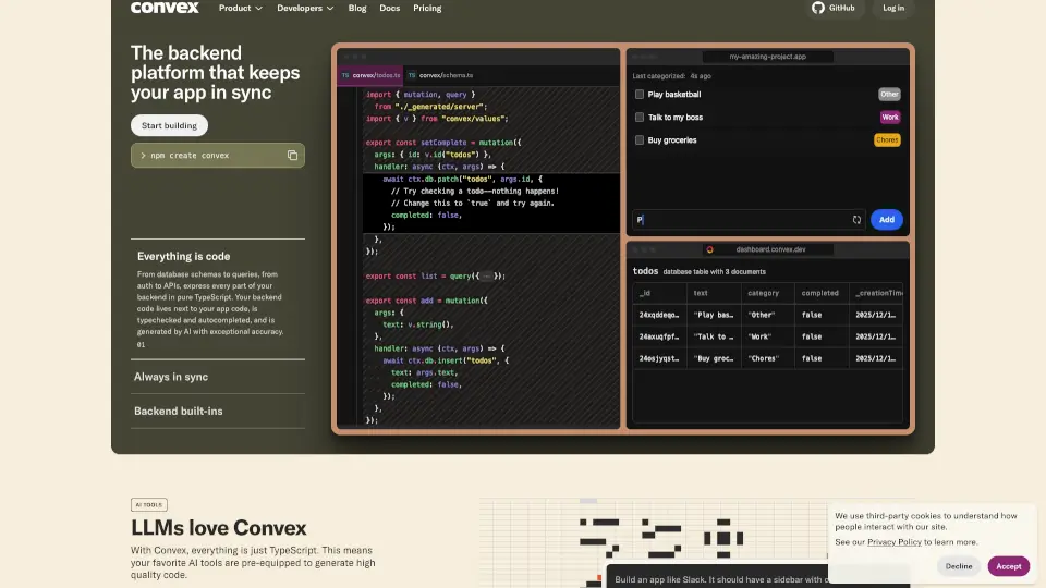 Convex — это мощный инструмент для разработчиков, который упрощает создание и масштабирование приложений с помощью реактивной базы данных и AI-генерации кода.