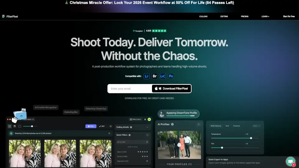 Aftershoot 是一款專為專業攝影師設計的 AI 選片與編輯軟體,能夠大幅加速你的工作流程。透過 AI 技術,它會不斷學習你的偏好,幫助你快速篩選和編輯照片,且無需擔心數量限制,只需支付固定費用。