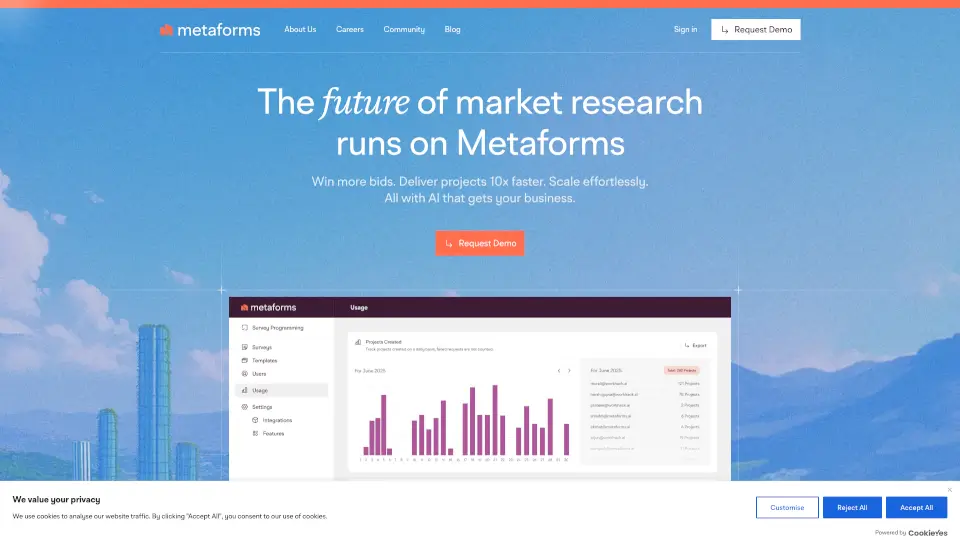Metaforms 是一款專為市場研究機構設計的 AI 助手,幫助提升工作效率,降低成本,並更快交付高品質成果。