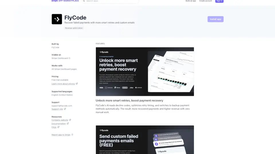 FlyCode 是一款專為 Stripe 平台設計的 AI 驅動支付優化工具,幫助企業最大化訂閱收入並改善客戶體驗。