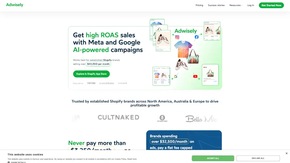 Adwisely 透過 AI 驅動的 Meta 和 Google 廣告活動,幫助 Shopify 商家提升銷售與 ROAS,適合預算 $1k+/月的店家,全自動化操作,專家支援,多行業實證有效。