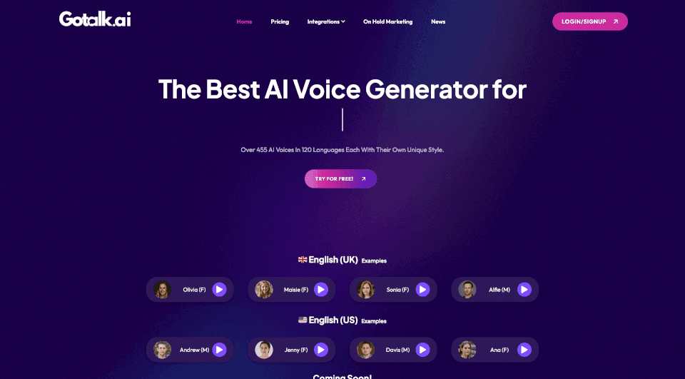 探索103種適用於文字轉語音高品質的AI工具和服務,包括, Microsoft Translator, Google Translate, Suno AI Bark, Freepik AI Voice Generator